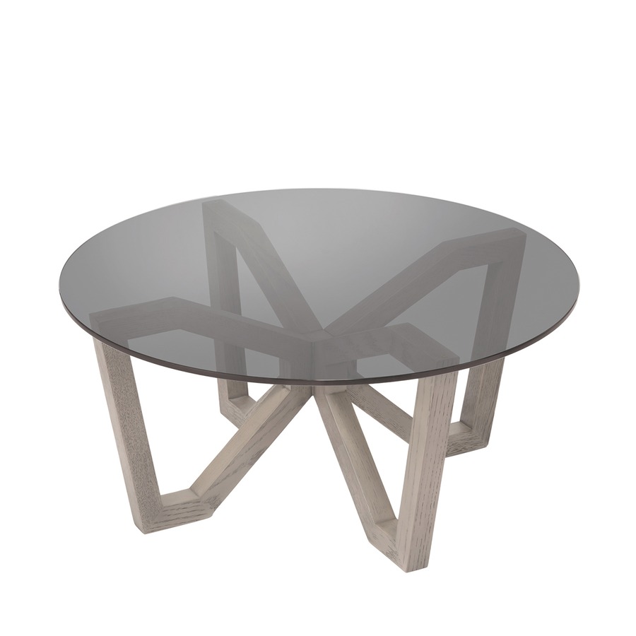 \コーヒーテーブル・リビングテーブル|ガラス天板 Φ800 オーク材 ブラウン色| BH-03G